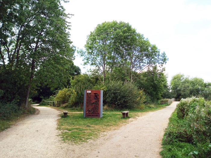 This elaborate artwork serves as a wayfinding point for anyone walking on Ham Lane between Orton Mere and Overton Station, or heading north towards Goldie Meadows and Ham Mere. The sculpture was created specifically for this site, and it features a complex design with herons, dragon flies, and foxgloves that responds to the rich habitats of the neighbouring meadows and meres1.