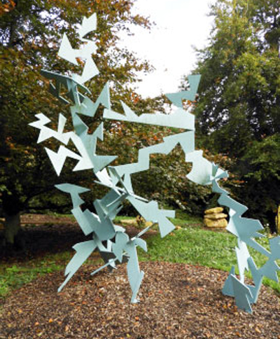 David Annesley’s artwork depicts the swirling flames of a fire using form and colour. This dramatic piece constructed in 1980 from painted welded steel. His sculptures, which are frequently bright in colour and geometric patterns and are inspired by his experience in the RAF, create a sense of lightness and movement in space. In 1980, the Peterborough Development Corporation purchased Fire for the Orton Centre. Burghley has now taken on a long-term loan of the sculpture. It is on display in the Garden of Surprises, Burghley Sculpture Park, Stamford PE9 3JY.