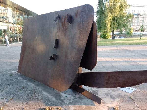 Lagoon was created by Sir Anthony Caro, who is considered one of the world’s greatest sculptor. Caro’s constant desire for experimentation and research is what distinguishes his work as a sculptor. Due to Caro’s reputation and widespread recognition for his work, information on this artwork is more readily available. The sculpture is located in Key Theatre (forecourt), Embankment Road, Peterborough PE1 1EF. Those who have lived in Peterborough for the past three decades may recall that the construction was first set up outside Stuart House in 1984, then moved to Thorpe Meadows1.