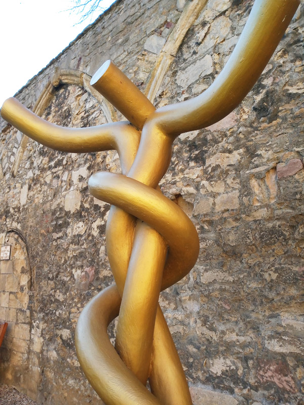 Three tubular, intertwined parts make up Lord of the Dance. The popular hymn by Sydney Carter and the Hindu god Shiva both share the same title. The artwork can be interpreted as a reference to the Crucified Christ, but it also conjures up images of the DNA double helix, the Brazen Serpent that Moses created, the Staff of Aesculapius, a symbol of the medical industry, and the Brazen Serpent1.