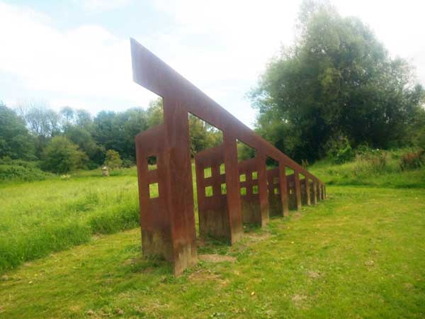 In the same way as Untitled 1989, lasers were used to cut the piece out of plate steel in the water tank. The delicate working of the steel is made possible by the precise structure. The surface oxidises with time, giving it an autumnal glow.